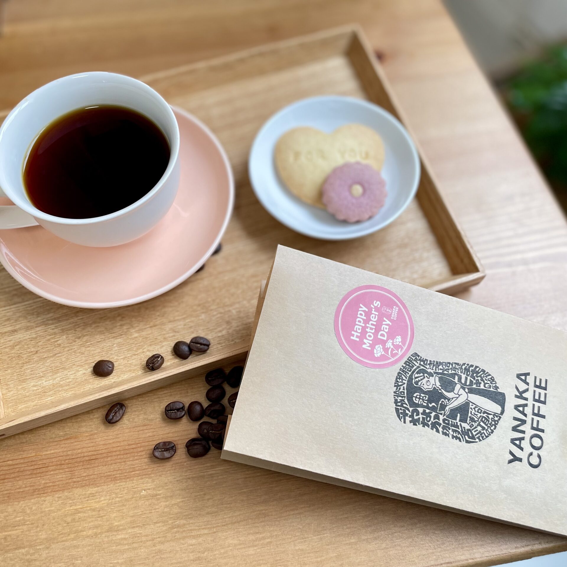 季節限定ブレンド「マザーズデイブレンド」とやなか珈琲オリジナルクッキーのセット。この季節限定の特別なギフトセットです。